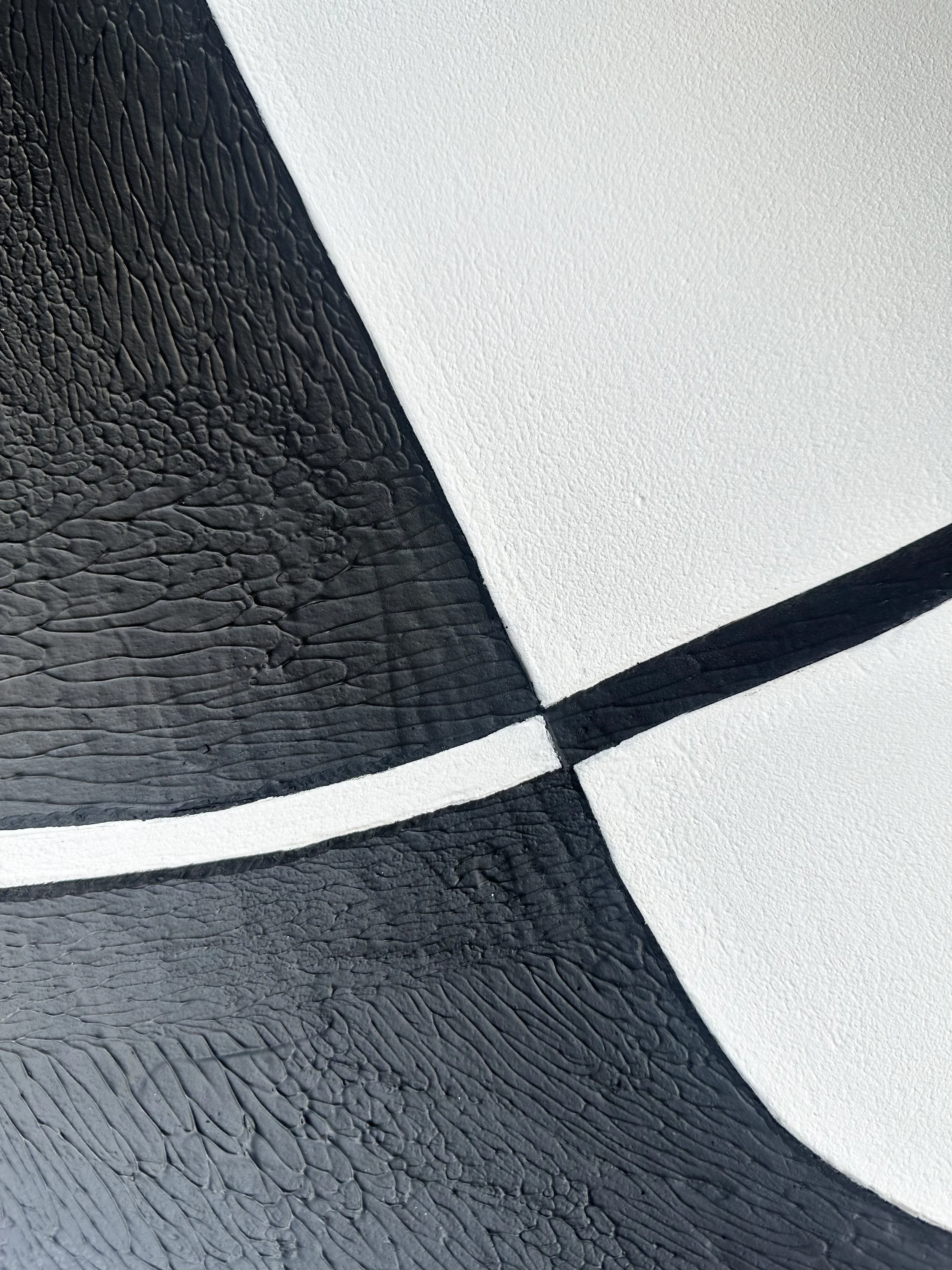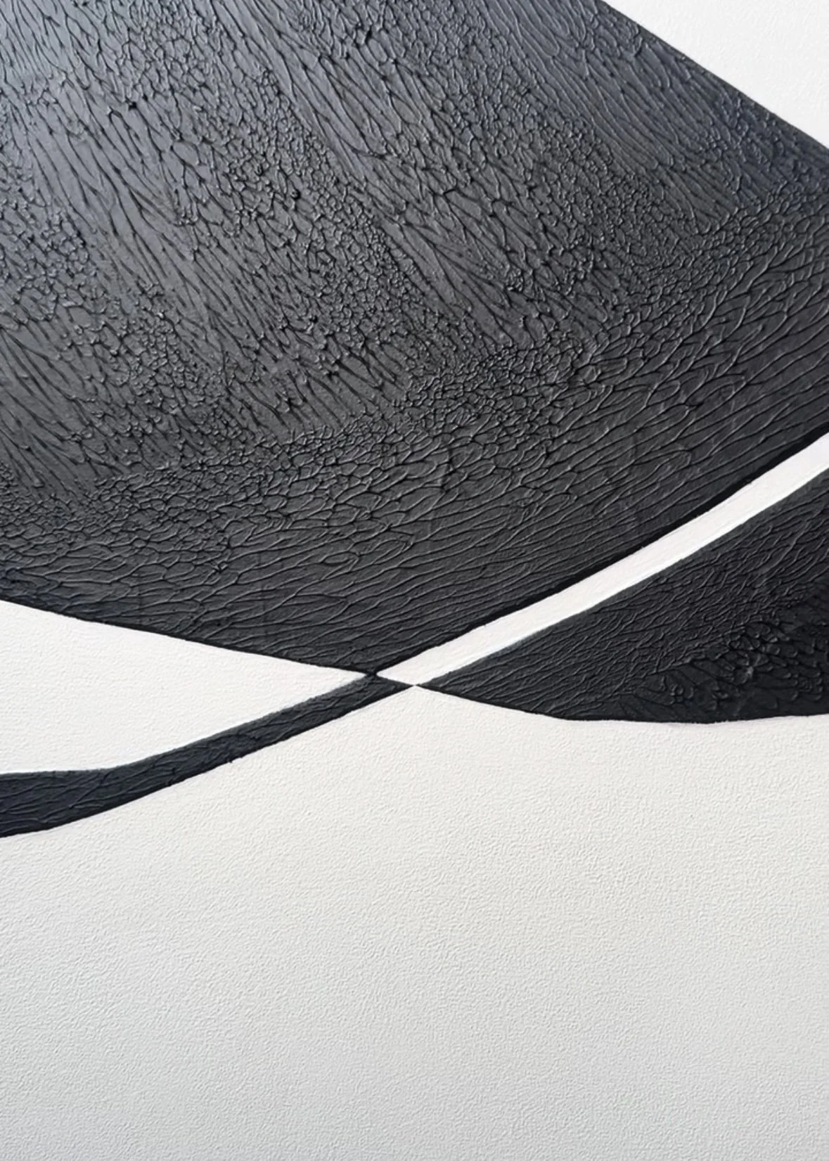 YUTORI, Japanese for a sense of space and ease, is the feeling of having room to breathe, both in your surroundings and within yourself. This painting was created for a collector whose calm and caring nature inspired each decision. Her simple, elegant style guided the black and white palette, the soft texture, and the flowing forms shaped with various tools. YUTORI is more than peace. It’s the quiet comfort of knowing you don’t need to hurry. It is the stillness between moments, the calm found in clarity, and the grace of living with intention.